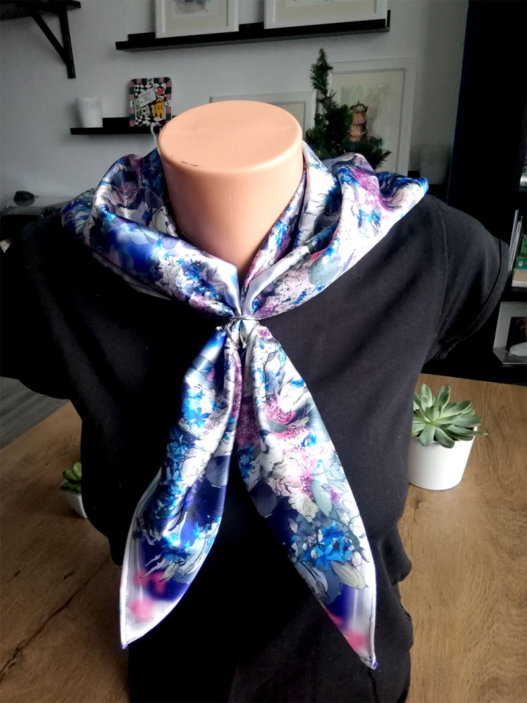 Pořídila jsem i sponu a je velmi praktická a slušivá. Šátek má krásné jasné barvy a a je příjemně jemný a originální. Děkuji také za krásné dárkové balení a jsem velmi ráda, že jsem tento dárek darovala.