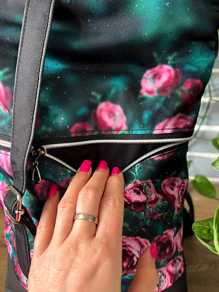 Dámský rolovaný batůžek je super praktický a přesto elegantní doplněk, který prostě potřebujete mít. Do batůžku dáte pohodlně desky velikosti A4, na přední straně najdete hlubokou kapsu na zip a uvnitř batůžku další dvě kapsy, takže už žádné hledání mobilu na dně batohu. Díky použitému materiálu udržíte batoh snadno v čistotě. A díky autorskému designu, který nikde jinde nepořídíte, budete nepřehlédnutelná.