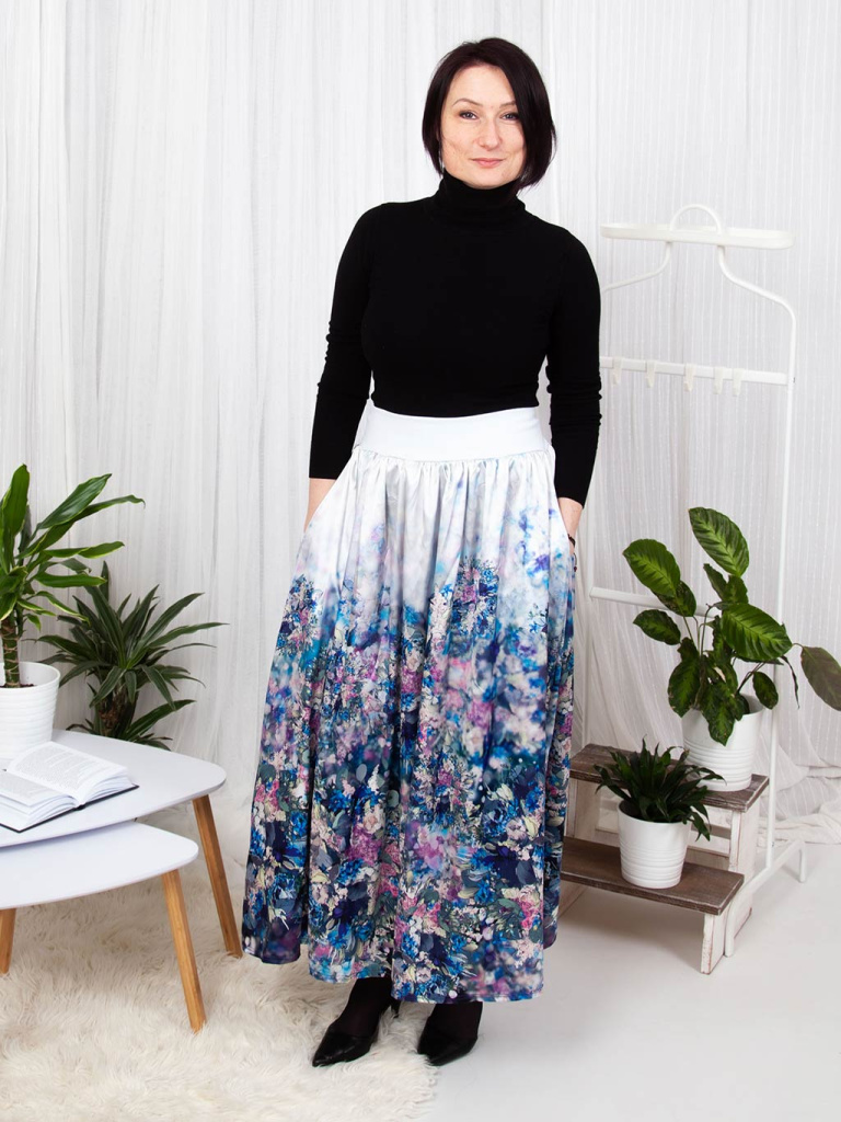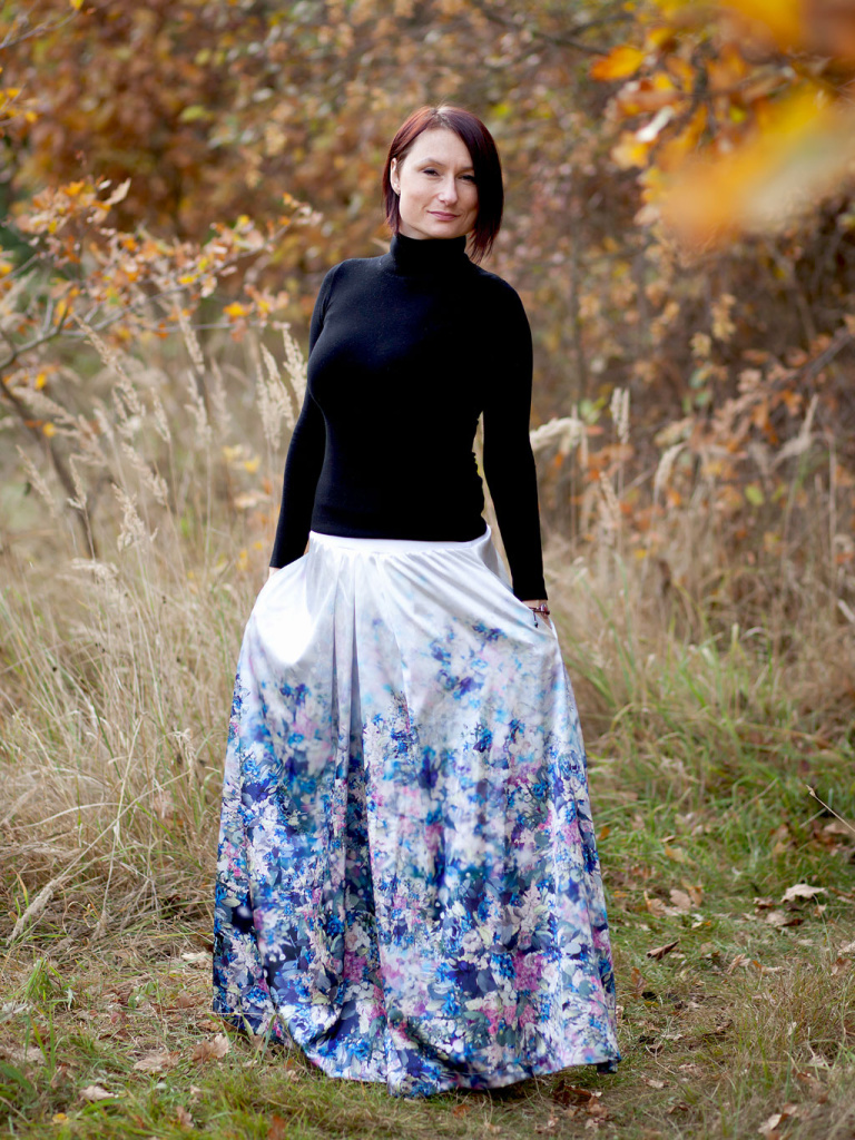 Dámská MAXI sukně s kapsami v unikátním AUTORSKÉM DESIGNU, který jsem malovala výhradně pro DIVA La VIDA, je součástí šatníku každé ženy, která touží být výjimečně elegantní, nepřehlédnutelná, ale přesto se cítit pohodlně. Satén vás bude hladit jako pírko, a díky rafinovanému střihu bude vaše sukně přesně taková, abyste se v ní cítila božsky.